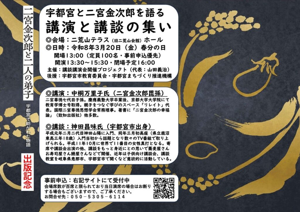 実は宇都宮にも所縁の深い二宮金次郎をテーマに、二宮尊徳七世孫の中桐万里子氏の講演と宇都宮出身の女流講談師神田昌味師匠の創作講談「二宮金次郎宇都宮物語」を、宇都宮市民の皆様にお届けします。